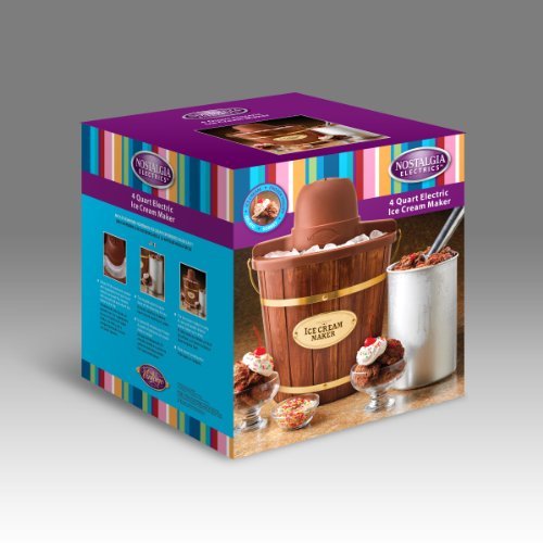 のNostalgia Electrics icmw400 4-quart Woodenバケット電動アイスクリームメーカーでは、自家製アイスクリーム体験と現代の利便性が確保されます。アルミ容器を配置するだけでいっぱいの原料の中心にバケット,バケツをアイスに、電気モーターは、激しさすることができます。まもなく、おいしいアイスクリームが提供する準備。