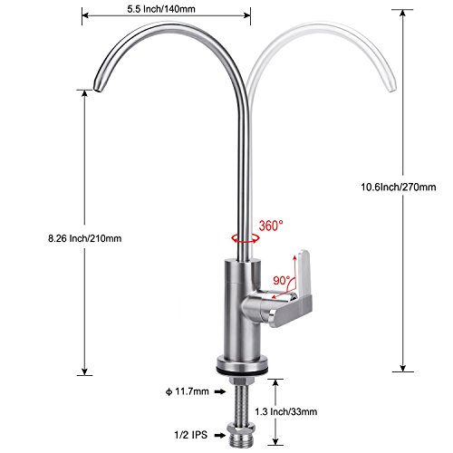 HomeIdeas水コントロールバルブ蛇口飲料水ろ過システム、1 / 4インチチューブ食品グレードSus 304ステンレススチール シルバー HOMEIDEAS HG015B