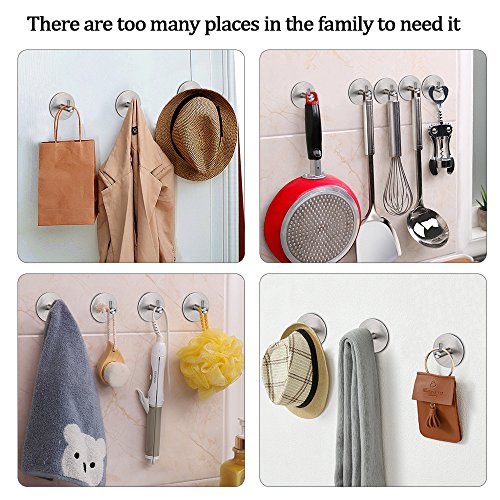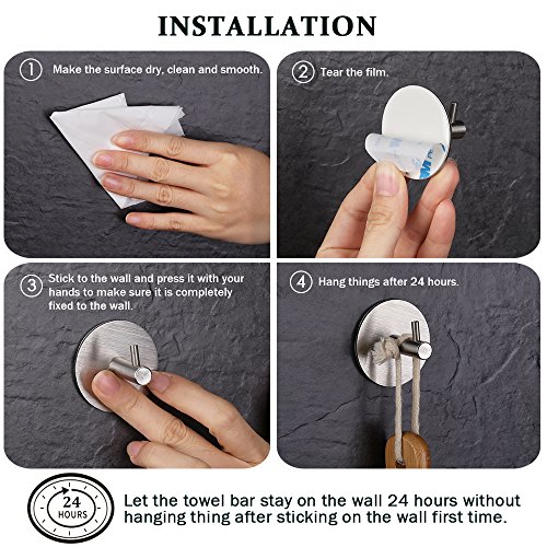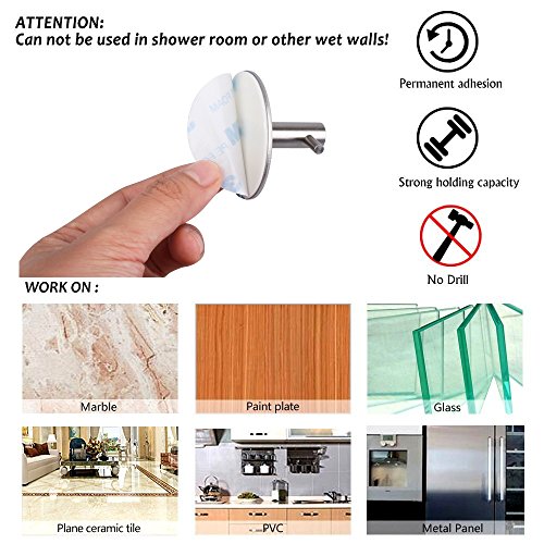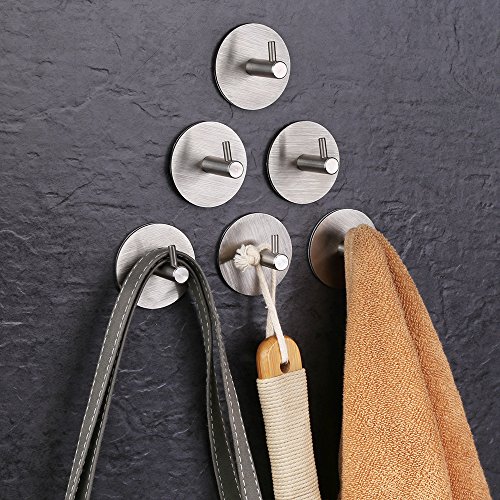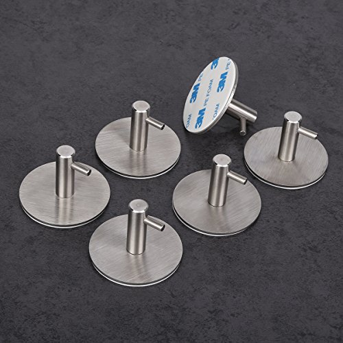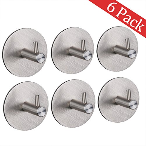 HomeIdeasルーム3 M粘着フックタオルとローブ、ホームキッチンの装飾壁粘着フックコート帽子のキー、つや消しステンレススチール,パックof 6