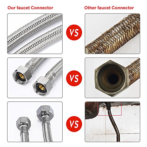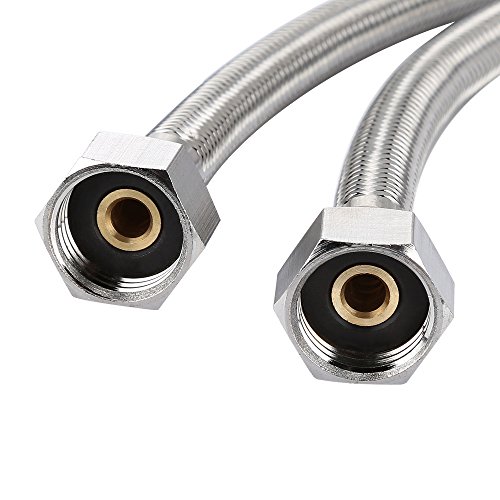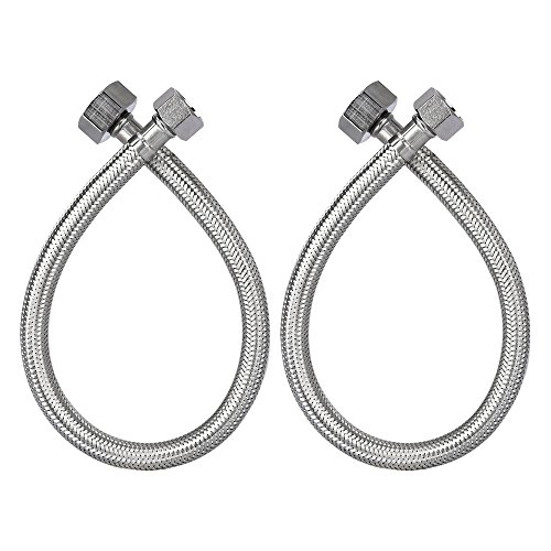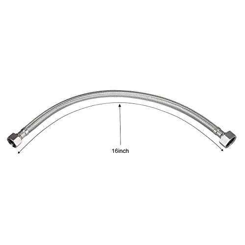 HomeIdeas蛇口コネクタ編組ステンレス鋼ホース3 / 8インチメス圧縮スレッドX 1 / 2 " i.p.メスストレートスレッド蛇口ホース交換用16インチロング2個1ペア 16インチ シルバー HOMEIDEAS HG018A