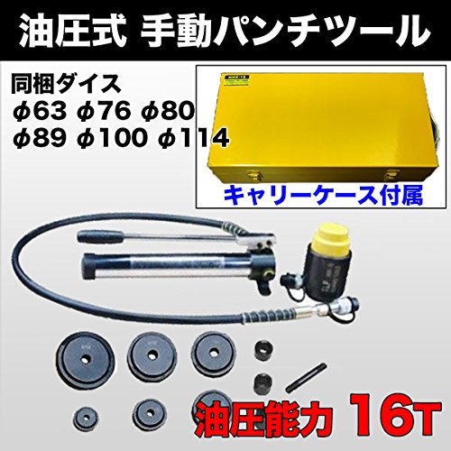 手動油圧パンチャー 16t 3.2mm厚鉄板対応 穴あけ (φ114 φ100 φ89 φ80 φ76 φ63) マフラー作成や取り付け穴穿孔に