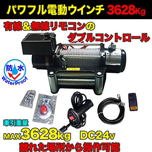 電動ウインチ Max3629kg DC24V 無線リモコン付き 強力 防水 ホイスト ウィンチ 牽引 ボート ジェットスキー 巻上げ機