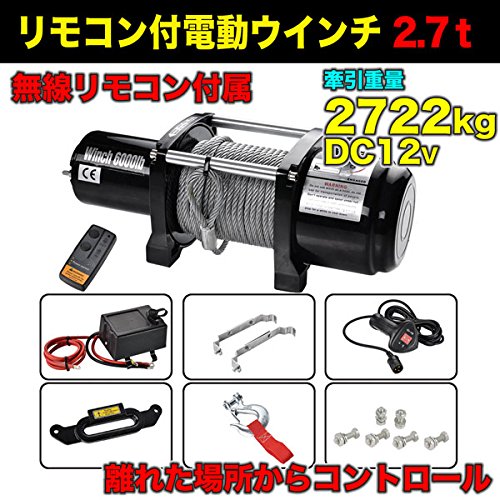 無線リモコン付き 強力電動ウインチ Max2722kg DC12V ホイスト 引き上げ機 電動ウィンチ