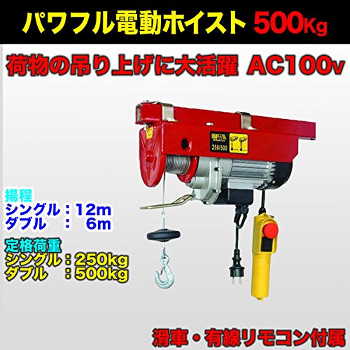 電動ホイスト 電動ウインチ 500kg 吊り上げ 吊り下げ クレーン 家庭用 100V リモコン付