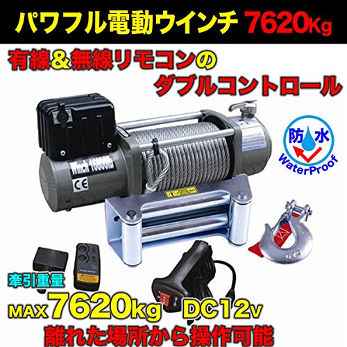強力電動ウインチ Max7620kg DC12V 無線リモコン付き 防水 ウィンチ 牽引 ボート ジェットスキー ホイスト 巻上げ機