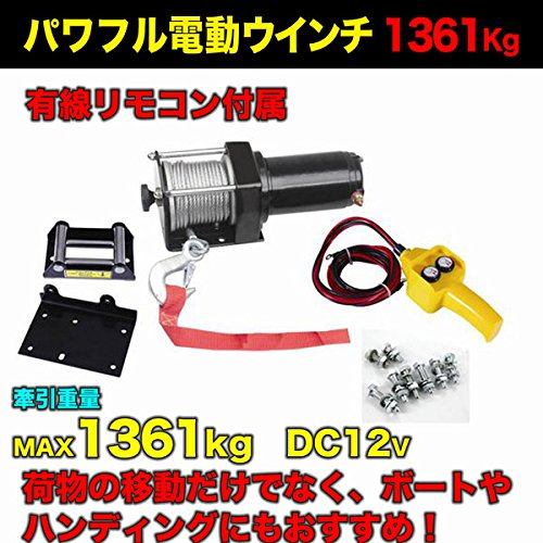強力電動ウインチ Max1361kg DC12V ウィンチ 牽引 ボート ジェットスキー ホイスト 巻上げ機