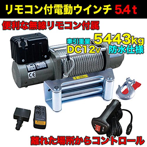 無線リモコン付き 強力電動ウインチ Max5443kg DC12V ホイスト 引き上げ機 電動ウィンチ