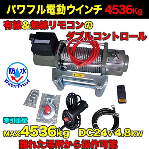 強力電動ウインチ Max4536kg DC24V 無線リモコン付き 防水 ウィンチ 牽引 ボート ジェットスキー ホイスト 巻上げ機