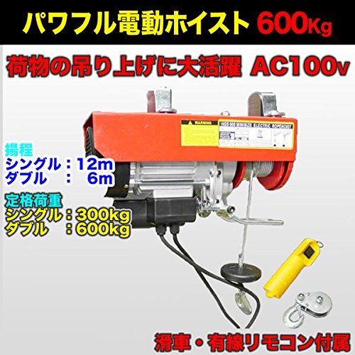 電動ホイスト 電動ウインチ 600kg 吊り上げ 吊り下げ クレーン 家庭用 100V リモコン付