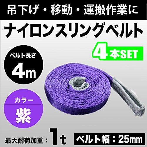 スリングベルト 1t 4m 4本セット幅25mm ベルトスリング 玉掛 吊ベルト 繊維ベルト ナイロンベルト クレーンベルト