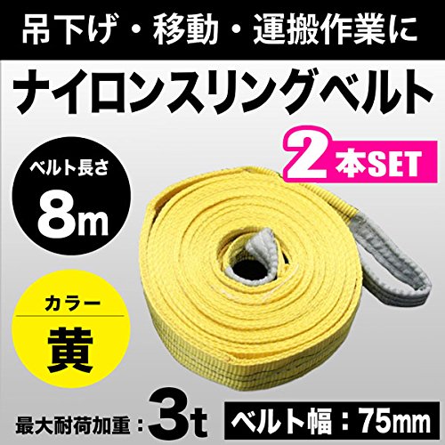 スリングベルト 3t 8m 2本セット 幅75mm ベルトスリング 玉掛 吊ベルト 繊維ベルト ナイロンベルト クレーンベルト