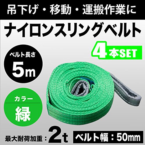 スリングベルト 2t 5m 4本セット 幅50mm ベルトスリング 玉掛 吊ベルト 繊維ベルト ナイロンベルト クレーンベルト