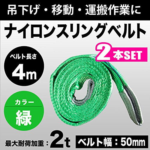 スリングベルト 2t 4m 2本セット 幅50mm ベルトスリング 玉掛 吊ベルト 繊維ベルト ナイロンベルト クレーンベルト
