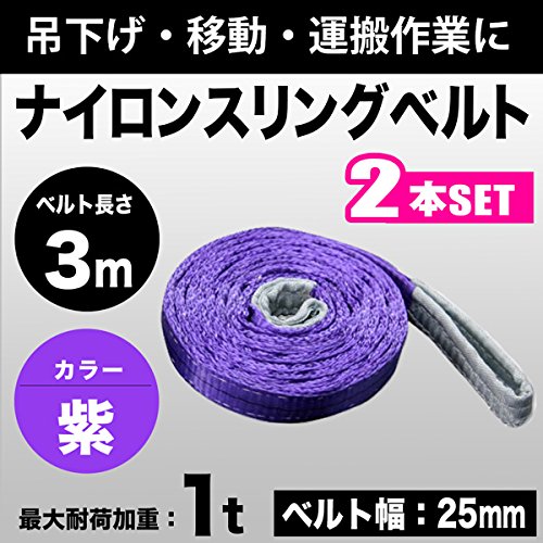 スリングベルト 1t 3m 2本セット 幅25mm ベルトスリング 玉掛 吊ベルト 繊維ベルト ナイロンベルト クレーンベルト