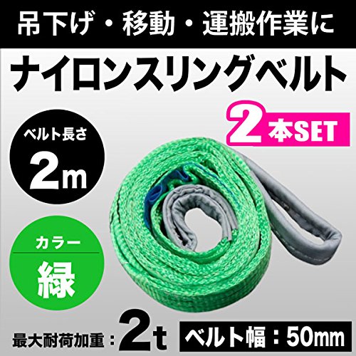 スリングベルト 2t 2m 2本セット 幅50mm ベルトスリング 玉掛 吊ベルト 繊維ベルト ナイロンベルト クレーンベルト