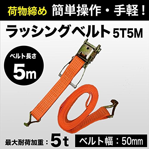 ラッシングベルト 5t 5m 幅50mm ラチェット式 トラック用 Jフック 荷締ベルト タイダウンベルト 固定ベルト ラッシング