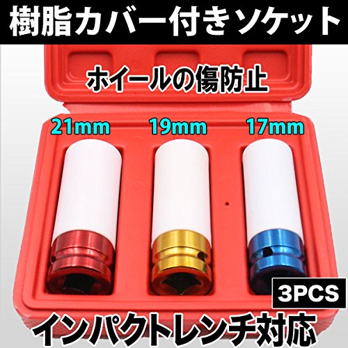 樹脂カバー付きホイールナットソケット インパクトレンチ対応 17mm 19mm 21mm