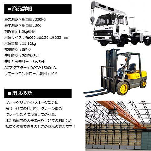 デジタルクレーンスケール 3000kg 充電式 3t 精密誤差 風袋機能付き 吊秤 はかり 計量器