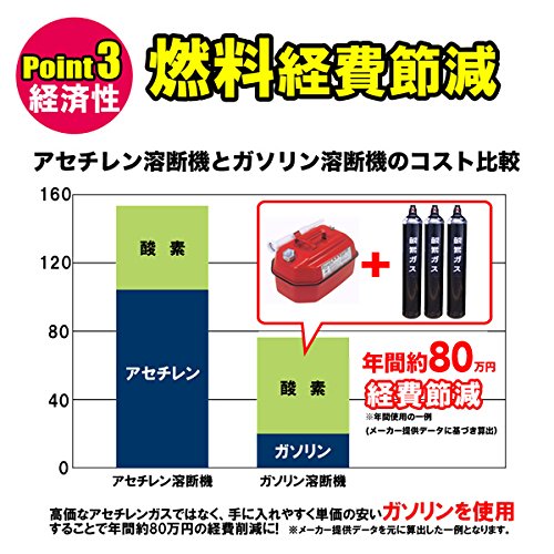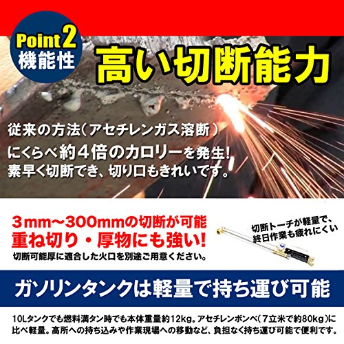 - アセチレンガス溶断の4倍プロパンガス溶断の2倍のカロリーでハイパワー!