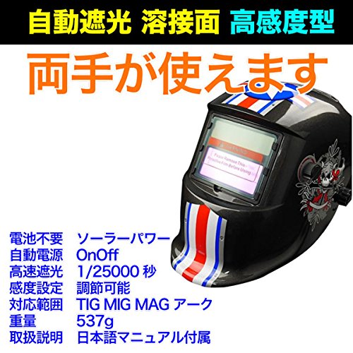 自動遮光 溶接面A 高感度タイプ19 TIG/MIG/MAGも対応高速1/250000秒遮光 フェイスシールド 保護面