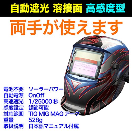 自動遮光 溶接面A 高感度タイプ10 TIG/MIG/MAGも対応高速1/250000秒遮光 フェイスシールド 保護面