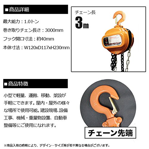 チェーンブロック 1000kg クレーン レバーホイスト ウインチ代わりに 倉庫・ガレージに 1t