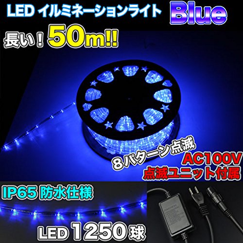 LEDロープライト 点滅セット 青 50m チューブライト 1250球 直径10mm イルミネーション 高輝度 AC100V クリスマス 照明 デコレーション 防水 屋外