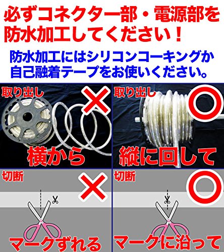※IP65レベルの防水仕様ですので、台風などの強風時には連結部から浸水します。屋外でのご使用の際は必ず連結部・エンドキャップ部の防水処理をお願いします。また水中での使用はできません。水没しないようにご使用ください。