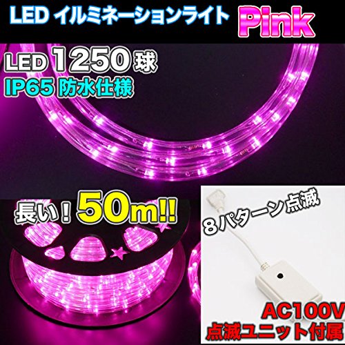 LEDロープライト 点滅セット ピンク 50m チューブライト 1250球 直径10mm イルミネーション 高輝度 AC100V クリスマス 照明 デコレーション 防水 屋外