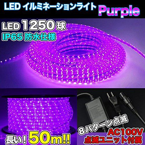 LEDロープライト 点滅セット 紫 50m チューブライト 1250球 直径10mm イルミネーション 高輝度 AC100V クリスマス 照明 デコレーション 防水 屋外