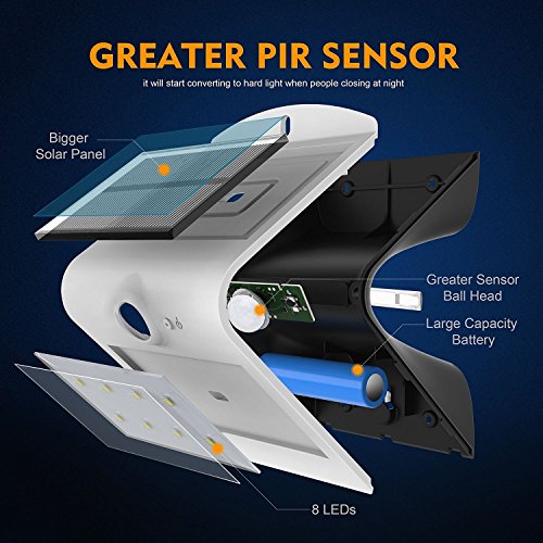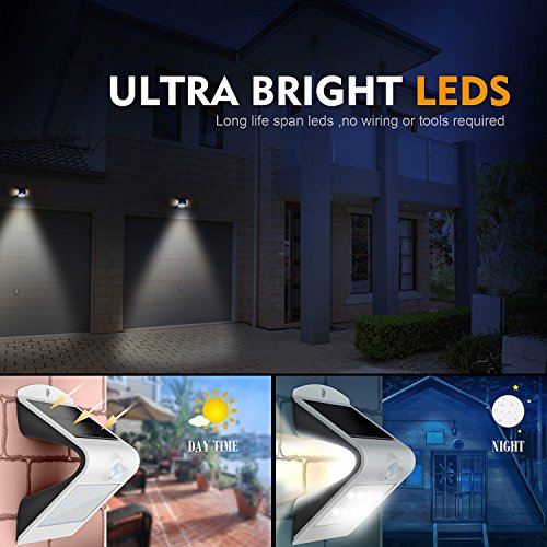 Honesteast Solar Light,Solar Powered Security Lighting Motion Sensor Outdoor for Garden Patio Deck Fence Exterior Wall (White-2 Pack) [並行輸入品]
