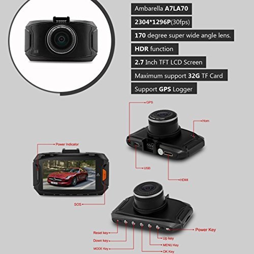 Car Camera/Car Camcorder Hd Pro- 2560x1080 Dashboard 2304x1296 Car Security DVR WDR HDR Dash Cam -Ambarella A7 Full Hd/ F1.8/ Lens 170degree with GPS /G-sensor / up to 64g (Not Include) [並行輸入品]