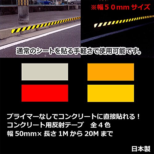 コンクリート用反射テープ 幅50mm×長さ1Mから10Mまで 日本製 プライマー不要 (長さ2M, 蛍光黄)