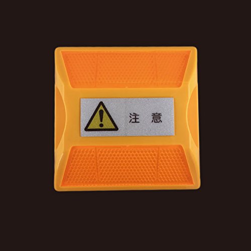 道路縁石用 反射板 ライトニング 縁石鋲 本体:イエロー 反射パターン5種 天面表示6種 (天面注意, 蛍光黄/蛍光黄)