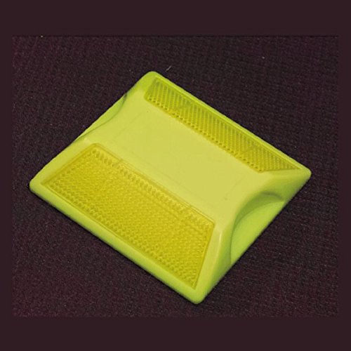 道路縁石用反射板 ライトニング 縁石鋲 本体:蛍光ライム色 反射パターン5種類 天面表示6パターン (天面反射無地, 蛍光ライム/蛍光ライム)