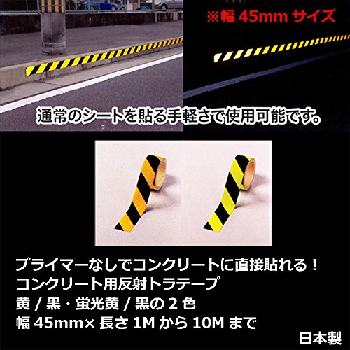 コンクリート粗面へ直接貼れる 反射トラテープ 黄/黒・蛍光黄/黒の2パターン 幅45mm×長さ1Mから10Mまで (長さ5M, 蛍光黄/黒)