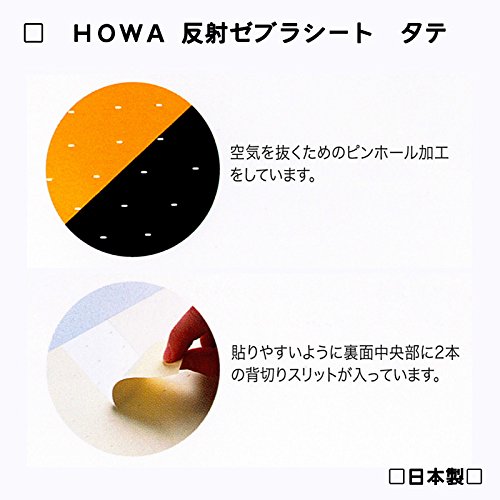2016年新商品!貼り付けるだけでしっかり 取付!反射ゼブラ(トラ)シート! 剥離紙を剥がすとあらかじめ強靭な糊がついているので誰でも簡単に目的箇所へ貼ることが出来ます。 ※施工箇所の埃やゴミ等を取り除いて、しっかりと圧着して下さい。