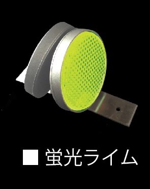 【業務用超高輝度反射板 AZシリーズ】 視線誘導標 デリネーター 超高輝度反射板 丸型直径100mm アンカー固定式 両面反射 角度付き 壁面や縁石などへ簡単取付 (両面角度付き ライム/ライム)