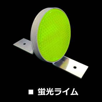 【業務用超高輝度反射板 AZシリーズ】 視線誘導標 デリネーター 超高輝度反射板 丸型直径100mm アンカー固定式 片面 角度付き 壁面や路面などへ簡単取付 (片面角度付き ライム)