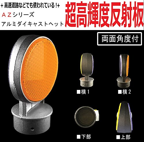 【業務用超高輝度反射板 AZシリーズ】 視線誘導標 デリネーター 超高輝度反射板 丸型直径100mm アルミダイキャストヘットのみ 両面反射 平行 (両面平行 黄/黄)