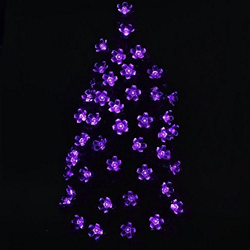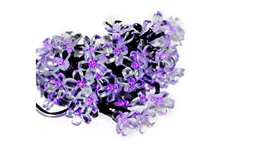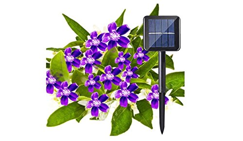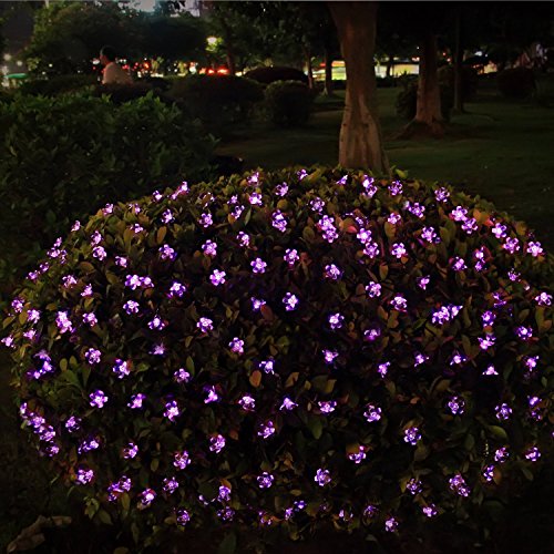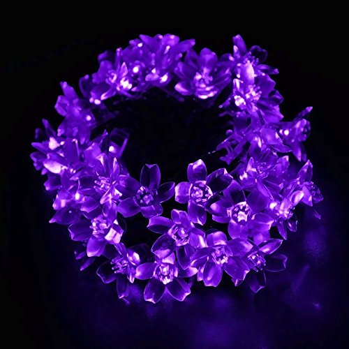 日本語説明書付き ソーラー充電式 環境の光センサー, 電球色, フェアリーライト, 7メートルLED50個付き, 防水IP55, 庭、クリスマス、パーティー、結婚式の場合に効果を発揮! (紫色)