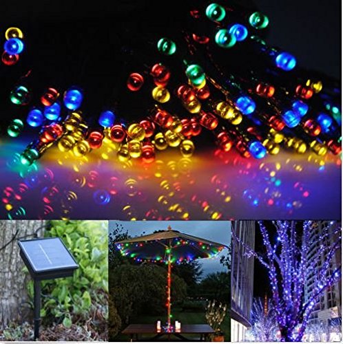 日本語説明書付き 2016 最新型 太陽発電 ソーラー 充電式 LED イルミネーション 発光モードは8パターン 計200球 20m 屋外 防水 光センサー内蔵 自動ON/OFF (4色ミックス赤青黄緑)