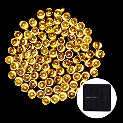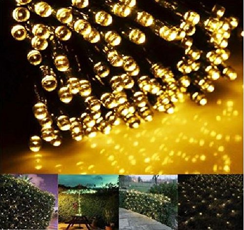 日本語説明書付き 2016 最新型 太陽発電 ソーラー 充電式 LED イルミネーション 発光モードは8パターン 計200球 20m 屋外 防水 光センサー内蔵 自動ON/OFF (ジャパンゴールド)