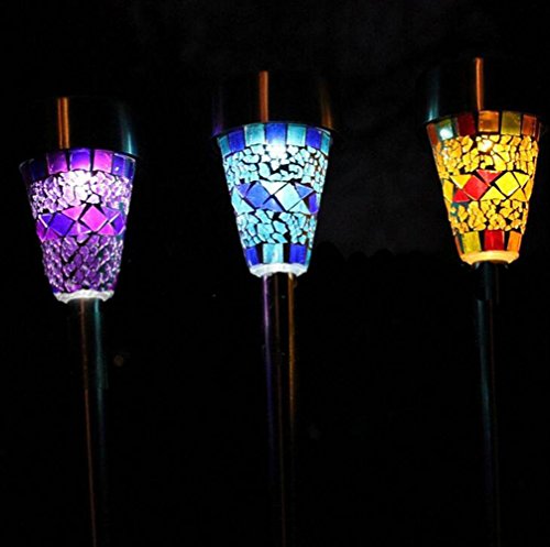 HYSUNG ソーラー LED ガーデンライト ステンドグラス風 太陽光自動点灯 自動消灯 省エネ 庭 玄関先 車道 歩道のライトアップ 防水 安全 3色 オレンジ、ブルー、パープル (18本セット)
