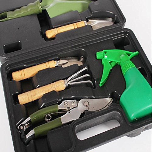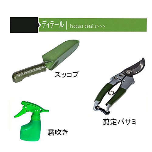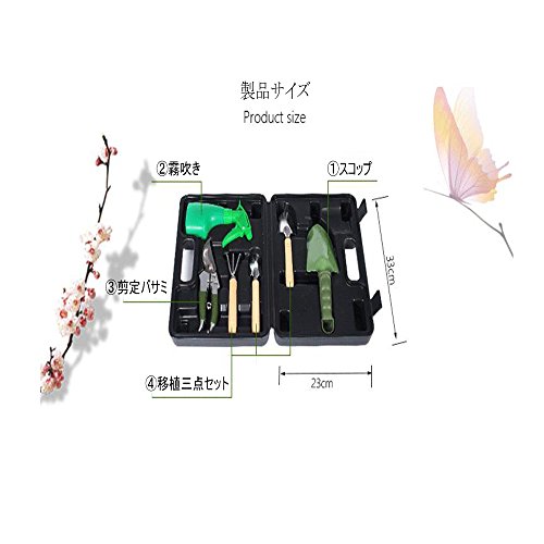 - セット内容:剪定バサミ、スコップ、熊手、フォーク、霧吹き、鋸、移植スコップ(小)、移植スコップ(大)、植物用ねじり(九点セットだけ含む)、専用収納ケース