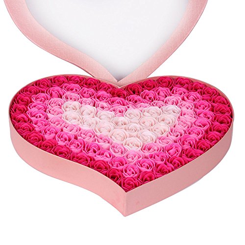 HYSUNG 石鹸 花 バラとポプリ 100個セット ハート型 手作り 洗う 手 お風呂 香り キレイ フラワー ソープ ギフト 誕生日 結婚お祝い バレンタインデー ロマンチック 贈り物 (ピンク)
