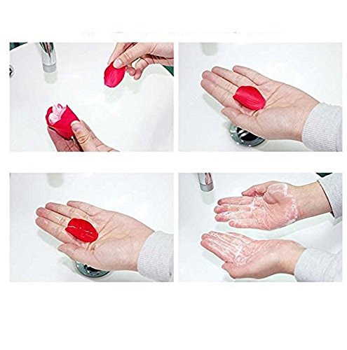 花びらは石鹸なので、お風呂に入れて、バラ風呂や、泡風呂としてもお楽しみ頂けます。天然植物エキスとバナナ精油の成分はお肌へうるおい感を与えて、殺菌作用もあります。洗顔には使用しないでください。
