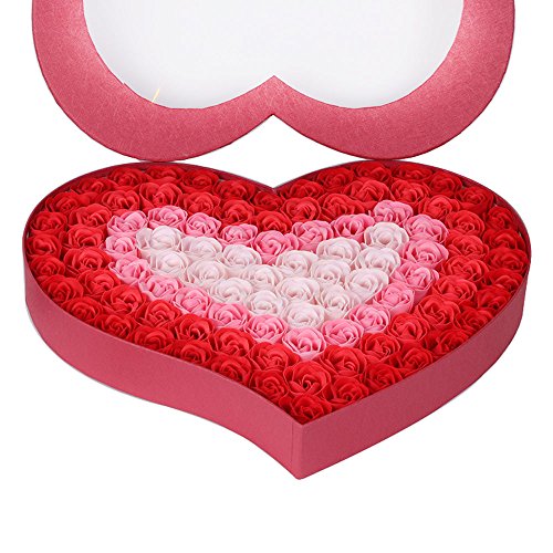 HYSUNG 石鹸 花 バラとポプリ 100個セット ハート型 手作り 洗う 手 お風呂 香り キレイ フラワー ソープ ギフト 誕生日 結婚お祝い バレンタインデー ロマンチック 贈り物 (赤)