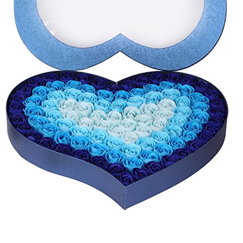 HYSUNG 石鹸 花 バラとポプリ 100個セット ハート型 手作り 洗う 手 お風呂 香り キレイ フラワー ソープ ギフト 誕生日 結婚お祝い バレンタインデー ロマンチック 贈り物(青)