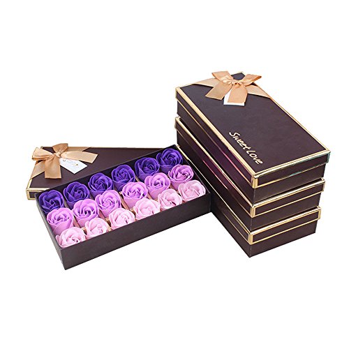 HYSUNG 美しいハンドメイドソープローズ18個デリケートな箱バレンタインデークリスマスの妻とガールフレンドのためのベストギフト (紫)